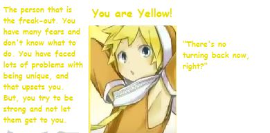 The person that is the freak-out. You have many fears and don't know what to do. You have faced lots of problems with being unique, and that upsets you. But, you try to be strong and not let them get to you.
