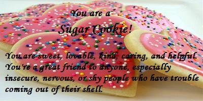 You are sweet, lovable, kind, caring, and helpful. You're a great friend to anyone, especially insecure, nervous, or shy people who have trouble coming out of their shell.
